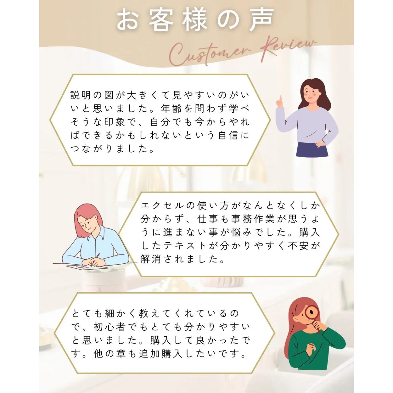 ただ読むだけではなく、実践的な課題を通じて自然とExcelに慣れていける内容が特徴です。従来のテキストとは異なり、実際に手を動かすことで感覚的に理解を深められるため、ストレスを感じることなく進められます。
